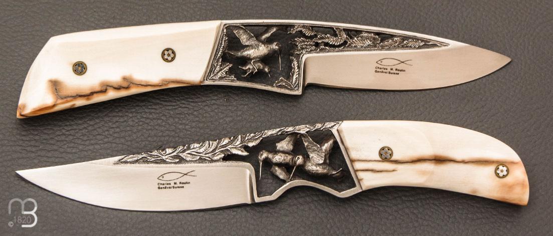 Superbe set de 2 couteaux de collection réalisés par le coutelier Suisse Charles Roulin