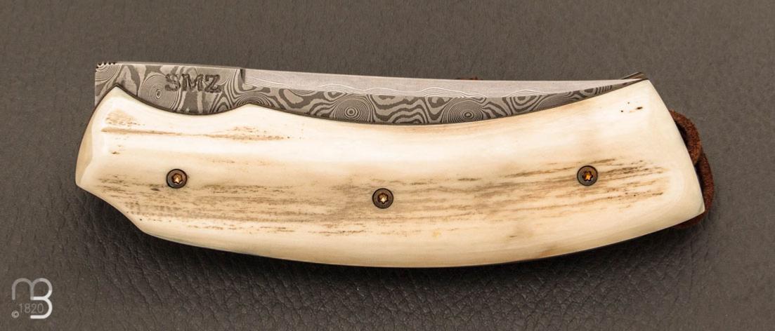 Couteau  "  1310 " liner lock de SMZ Flammes de forge - Ivoire de morse et lame damas