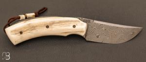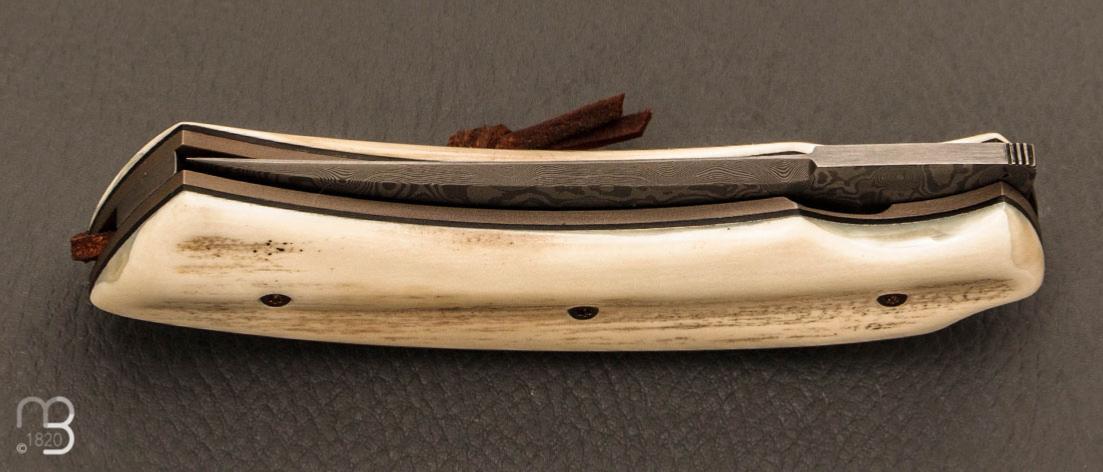 Couteau " 1310 " liner lock de SMZ Flammes de forge - Ivoire de morse et lame damas