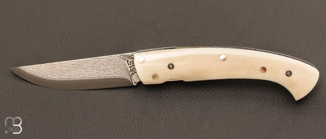 Couteau " 1515 collection Tokyo/Paris N°6/15  " par Manu Laplace - Os de buffle et damas Suminagashi