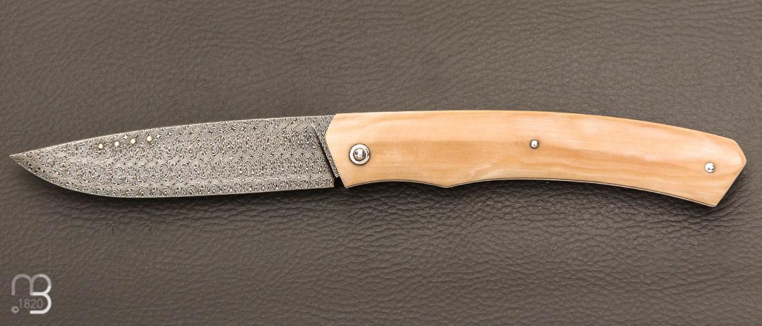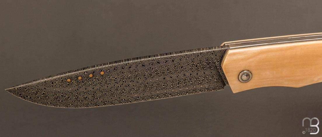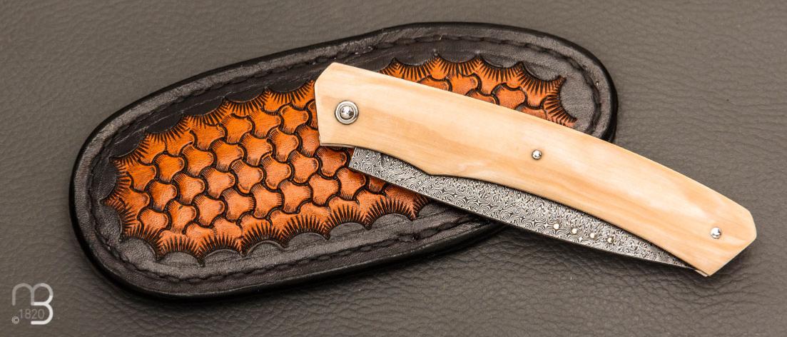 Couteau " 1820 Berthier " par Anthony Brochier - Damas Mosaïque et ivoire de mammouth