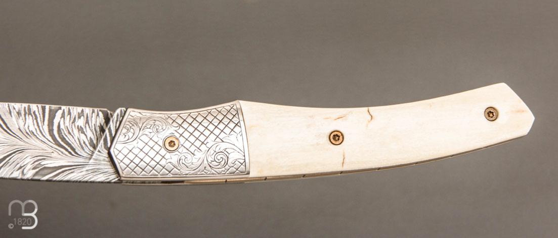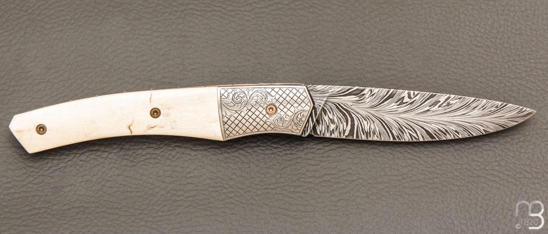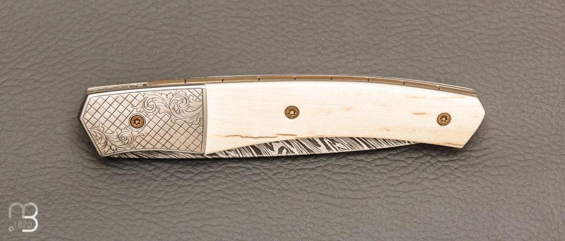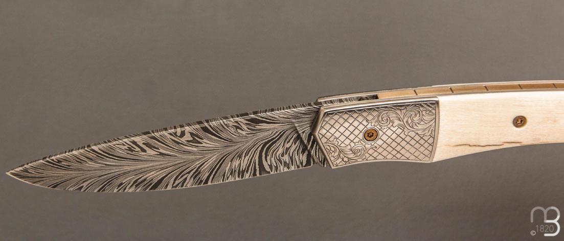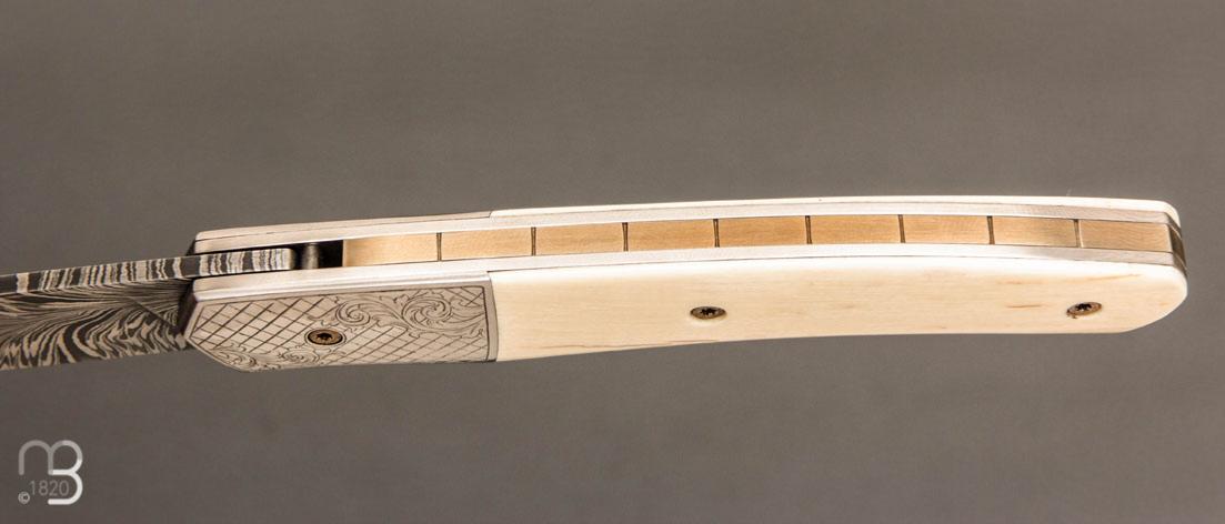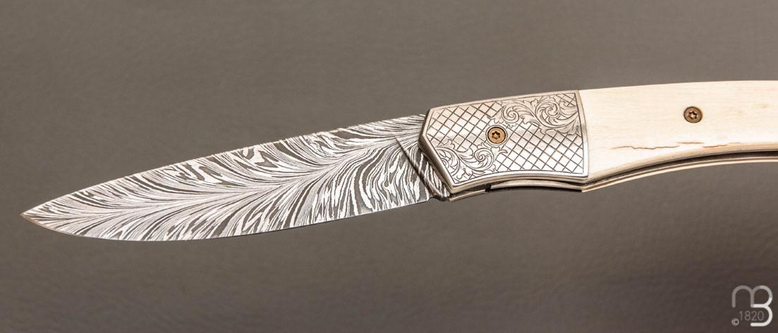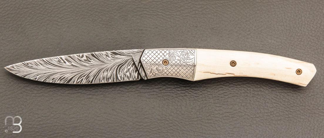 Couteau " 1820 Berthier " par Tim Bernard - Ivoire de mammouth et lame damas plume