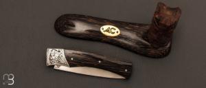Couteau pliant de collection "Artense Hawaï " par Alain Conesa - Acier & Cuir