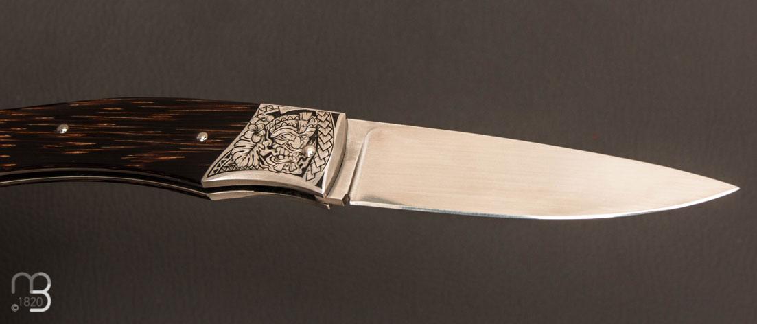 Couteau  "  Artense Hawaï " par Alain Conesa - Acier & Cuir - Palmier noir