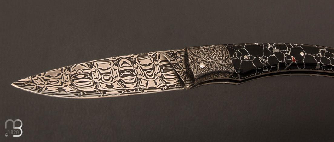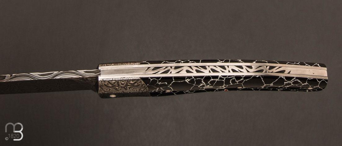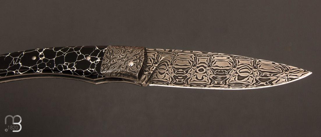 Couteau " Artense " par Alain Conesa - Acier & Cuir - Onyx argent et lame damas