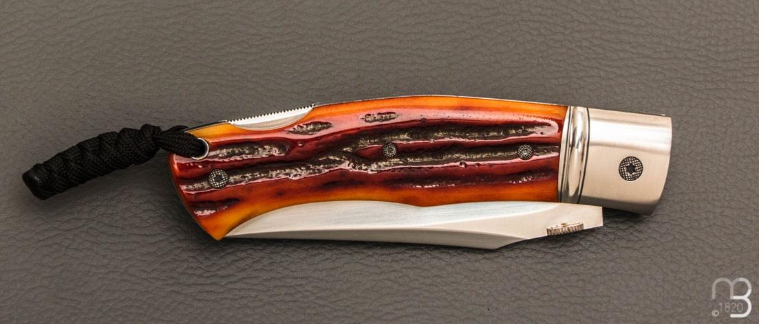 Couteau " BAD ASS " custom par Raphaël Durand - Os cerfé et lame en RWL34