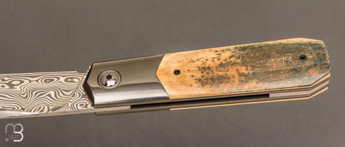 Couteau "Barlow" custom par Romain Lopez - Ivoire de mammouth et Damasteel