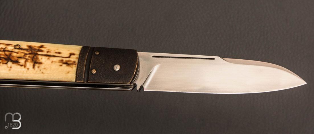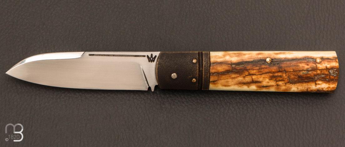 Couteau  "  Barlow " pliant custom par Nicolas Weber - Ivoire de mammouth et lame en RWL-34