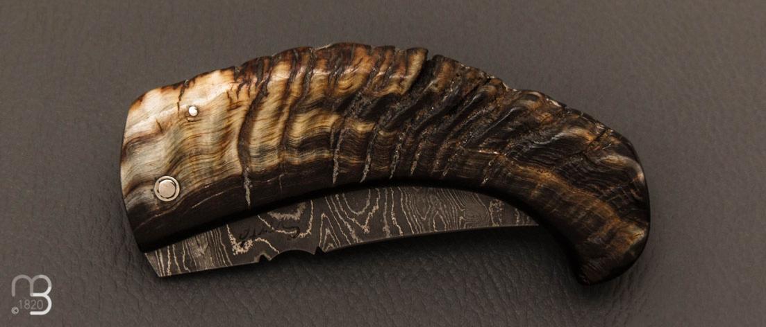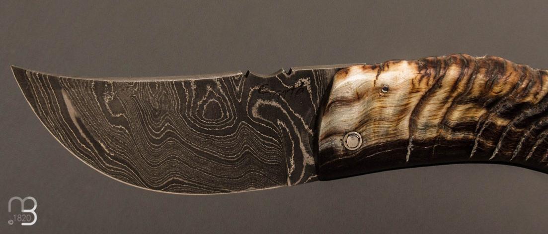 Couteau " Berger " pliant par José Viale - Lame Damas et corne de bélier