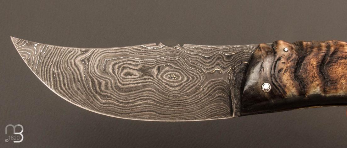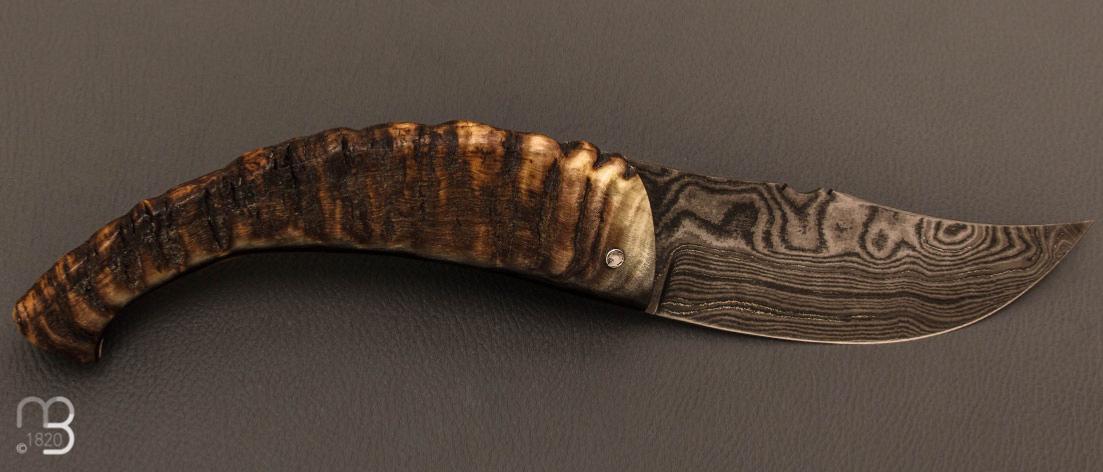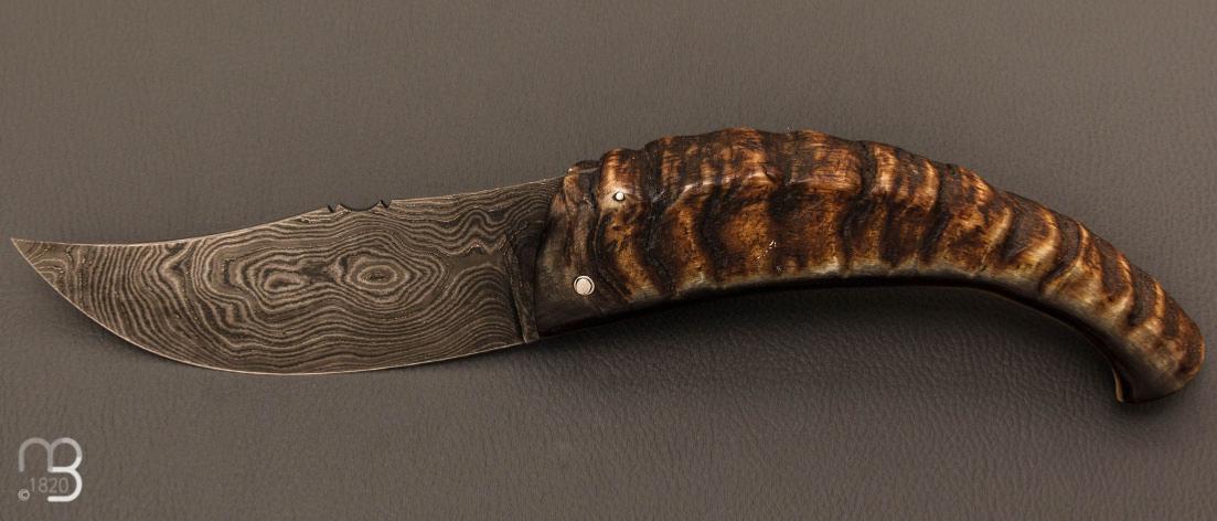 Couteau " Berger XL " pliant par José Viale - Lame Damas et corne de mouflon