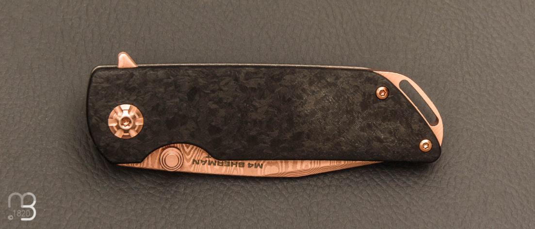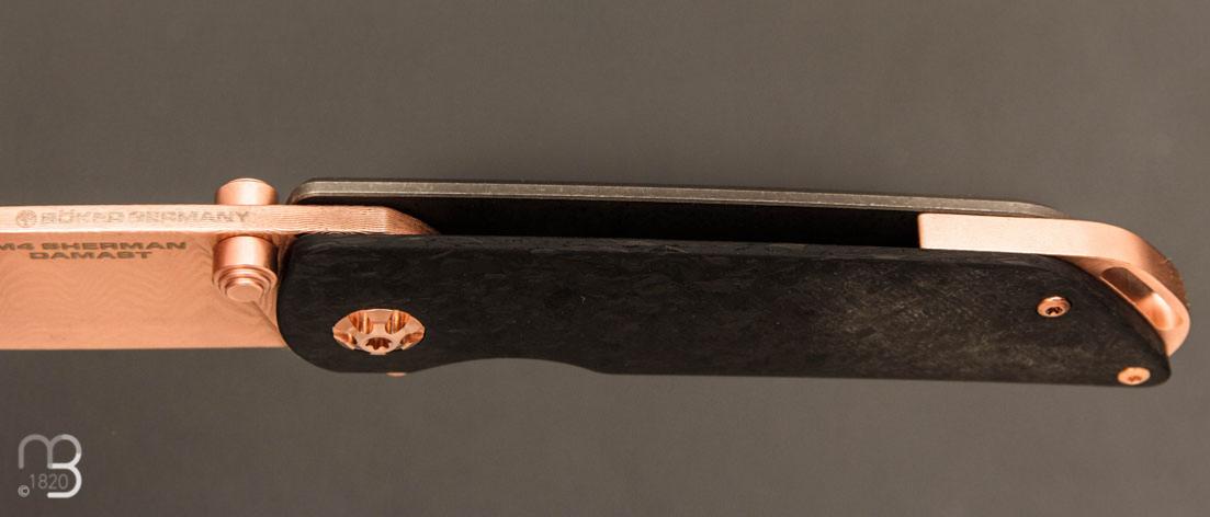 Couteau de poche M4 Sherman Damast Rosé gold par Böker Solingen.