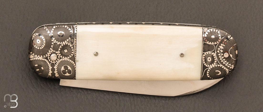 Couteau de collection pliant de poche style bouledogue, fait main par Philippe Ricard.