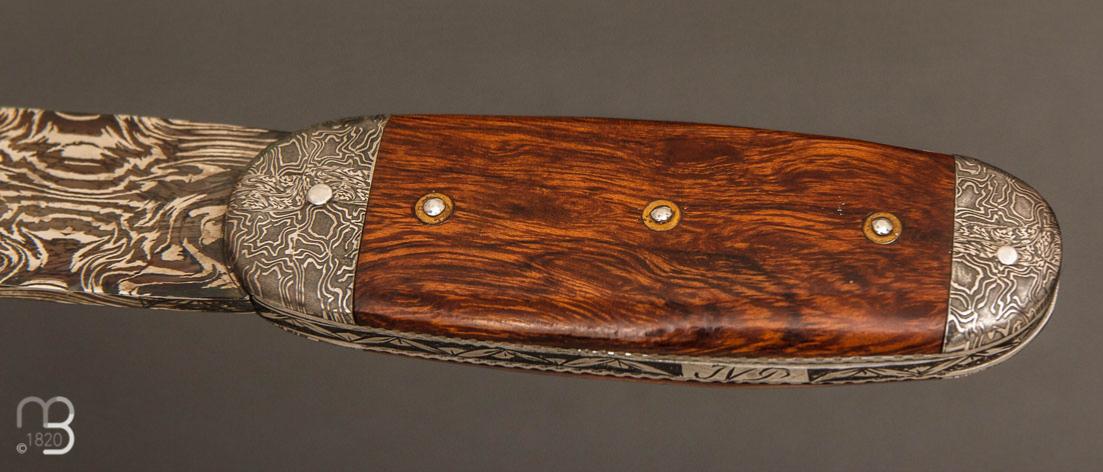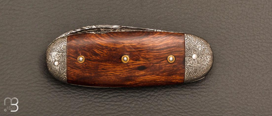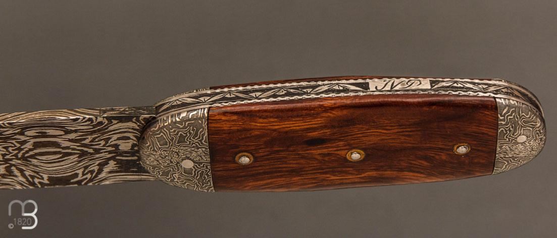 •  Couteau " Bouledogue" de Jean Pierre Veysseyre - Bois de fer et lame damas