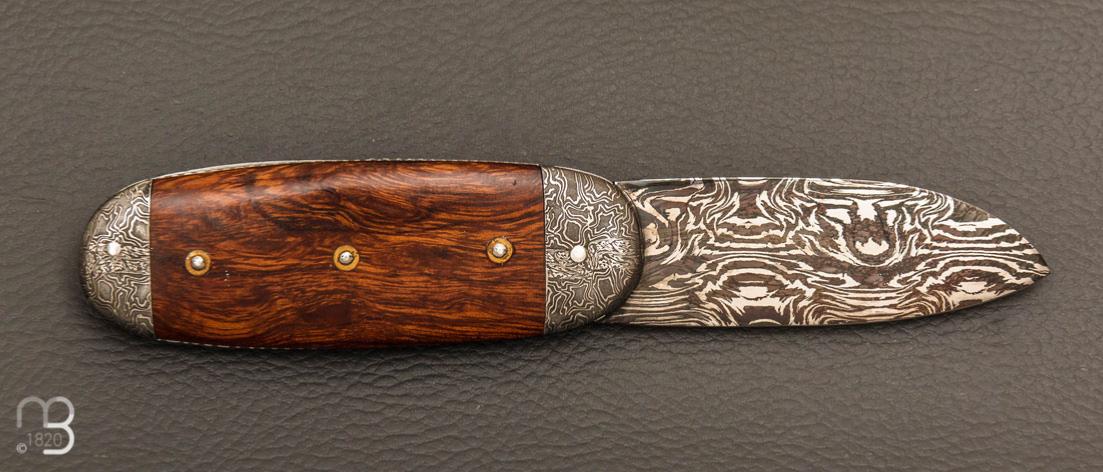Couteau " Bouledogue" de Jean Pierre Veysseyre - Bois de fer et lame damas