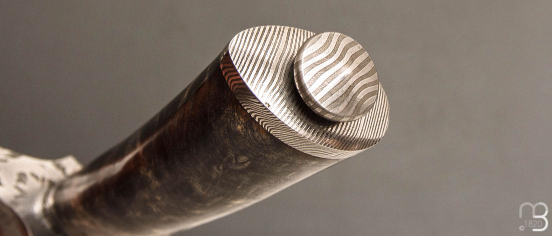 Manche en fourche de peuplier et garde et pommeau en damas.