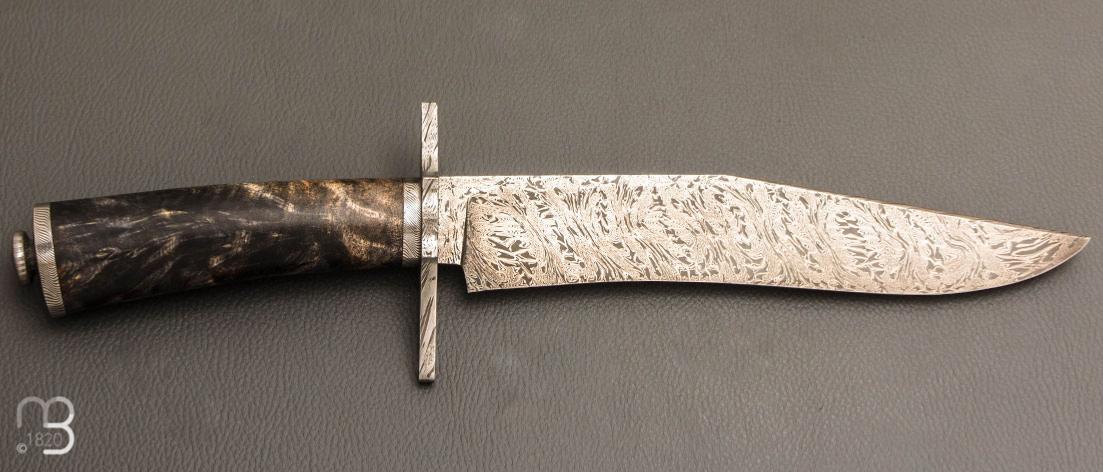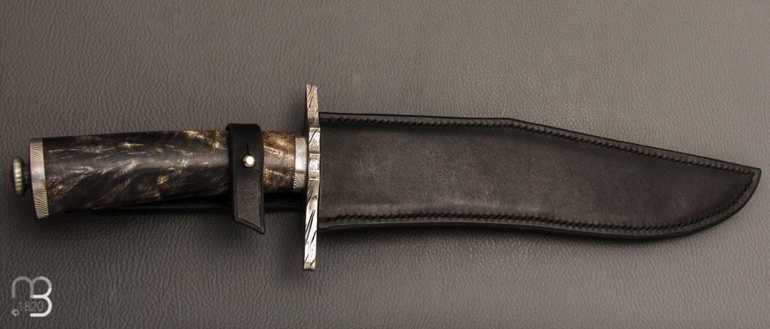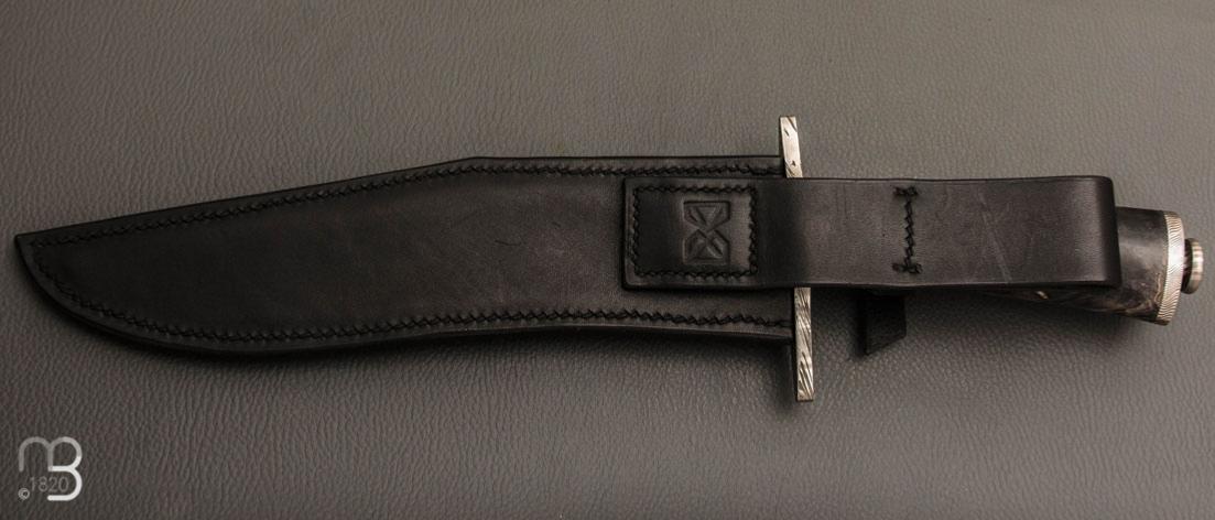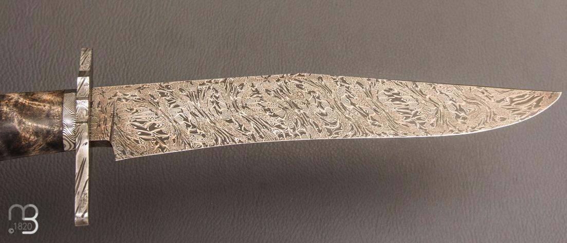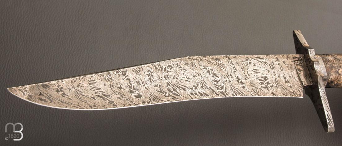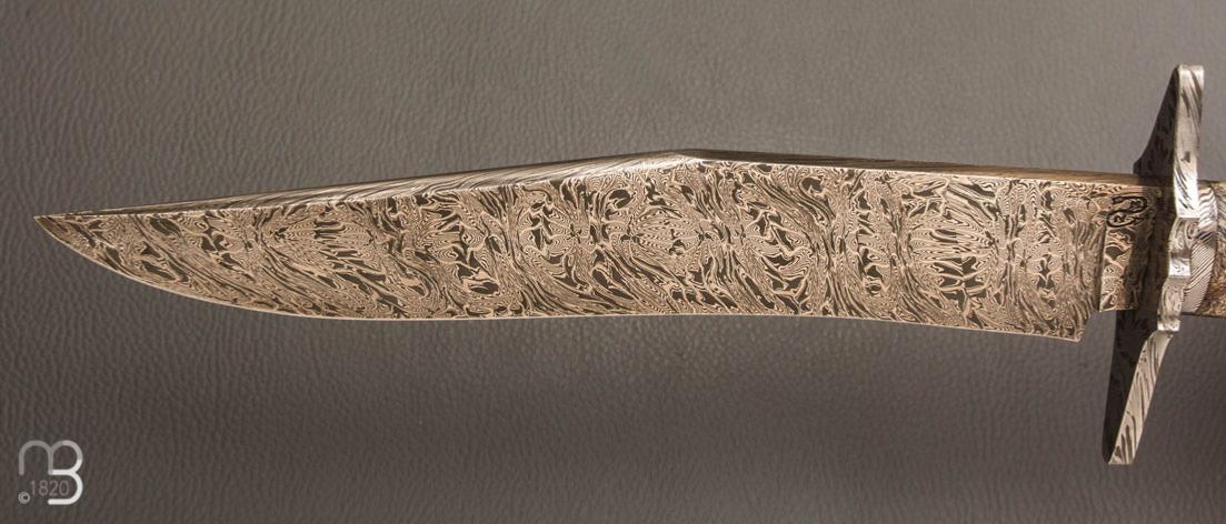 Couteau " Bowie " de Nicolas Mestrallet - Atelier du couteau Vaunaveys -Fourche de peulier et lame damas