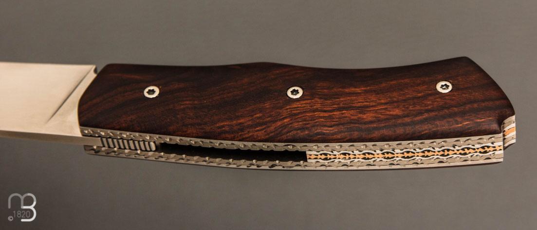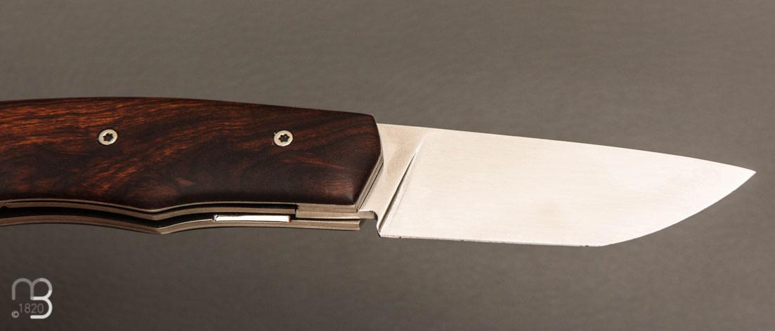 •  Couteau " Brimbelle " Liner-Lock flipper par Louis Contat - Bois de fer et 14c28N