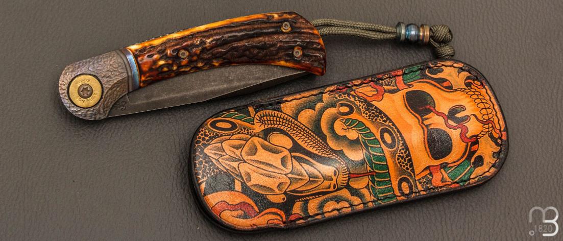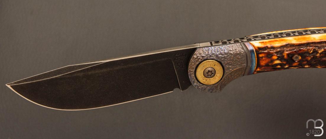 Couteau "Bullet" pliant de Gudy van Poppel - Bois de cerf et Böhler N690