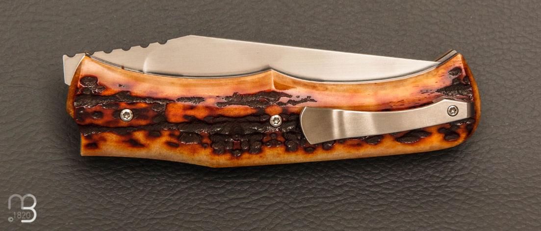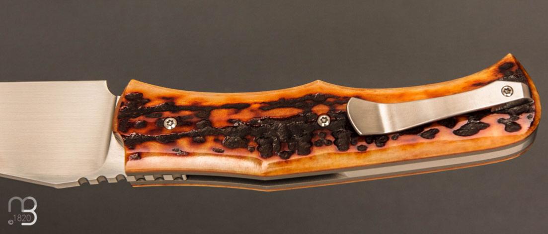Couteau " C-KLONE " custom par Rémi Lavialle - Os cerfé et RWL34