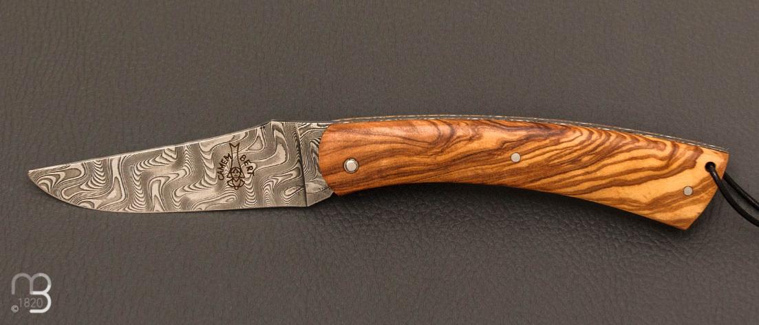 Couteau " Camembert damas" régional pliant en olivier