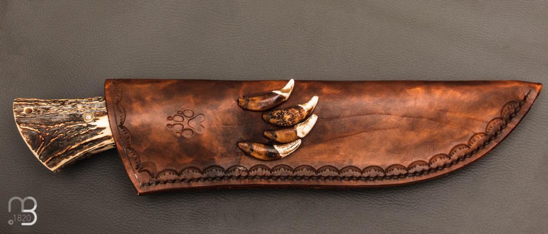 Couteau livré avec son étui en cuir avec dents de de coyote fait main par Mickaël Moing