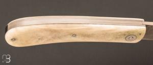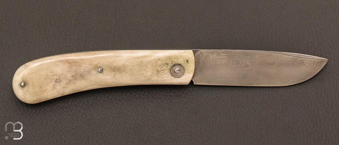 Couteau  " cran carré " bois d'élan et damas inox sandwich par Frédéric Maschio