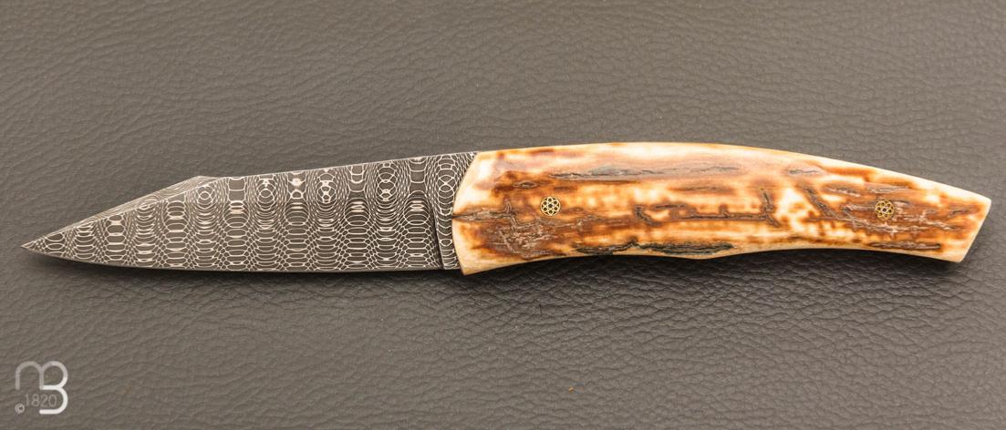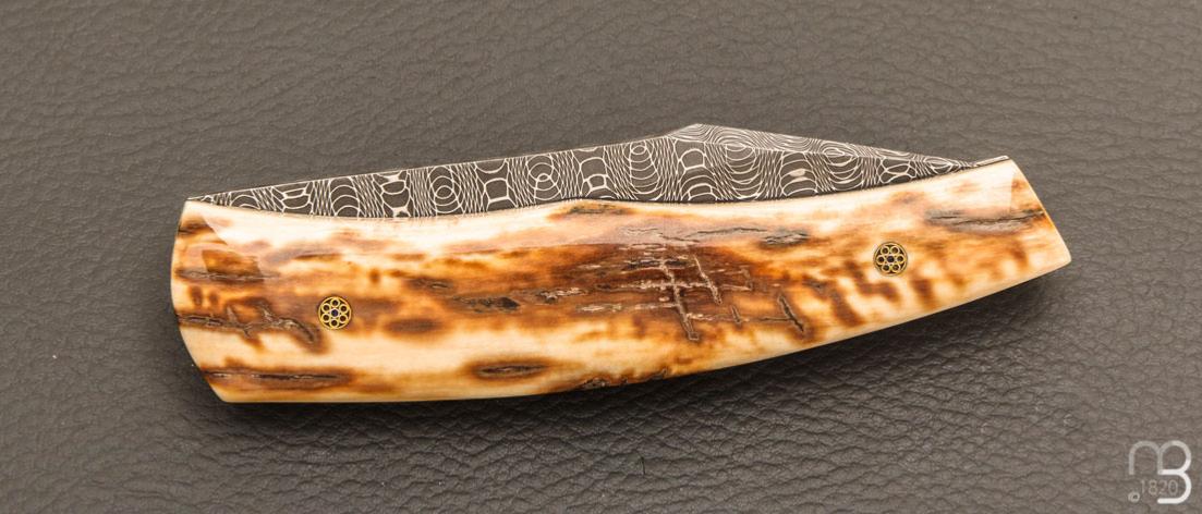 Couteau " custom " de Alain & Joris Chomilier - Ivoire de mammouth et damas "spirographe" de Vegas Forge