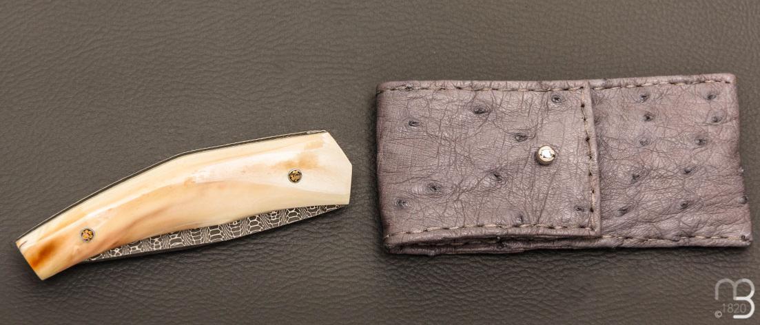 Couteau " custom " de Alain & Joris Chomilier - Ivoire de phacochère et damas "spirographe" de Vegas Forge