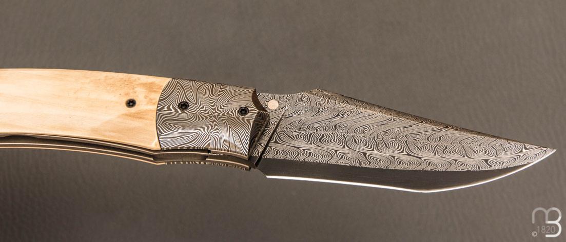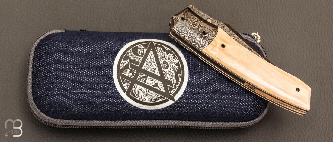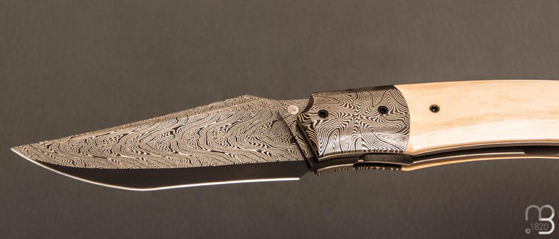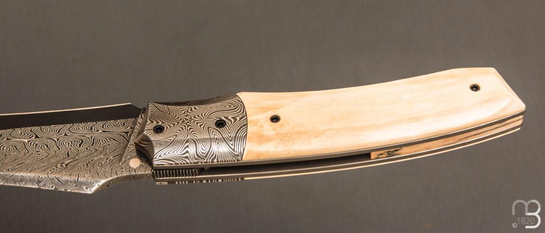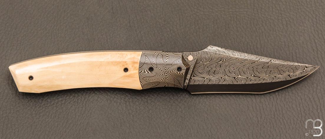 Couteau " custom " de Berthelemy Gabriel - La Forge Agab - Ivoire de mammouth et lame damas