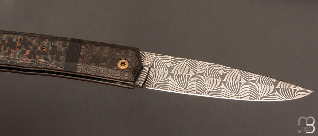 •   Couteau " Custom " de Philippe Ricard - Fibre de carbone et damas