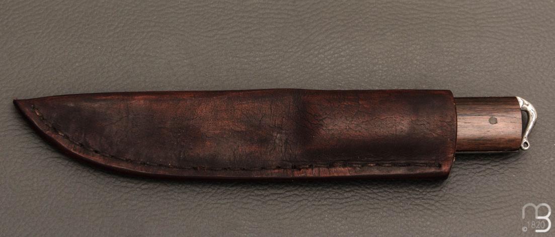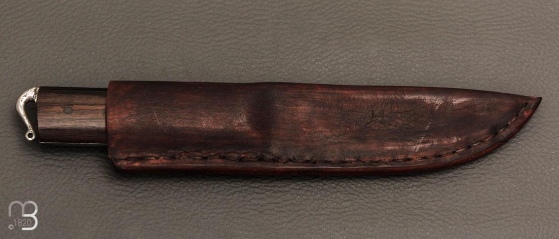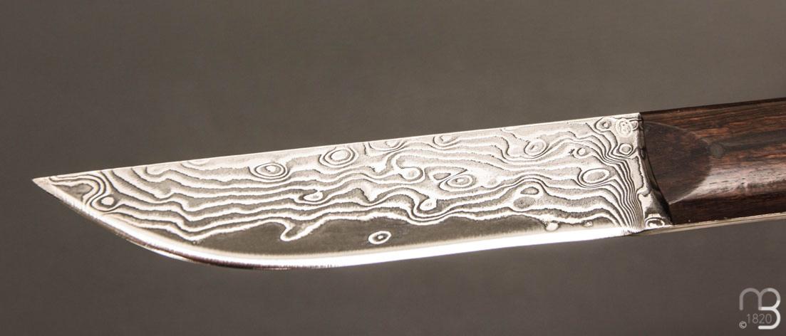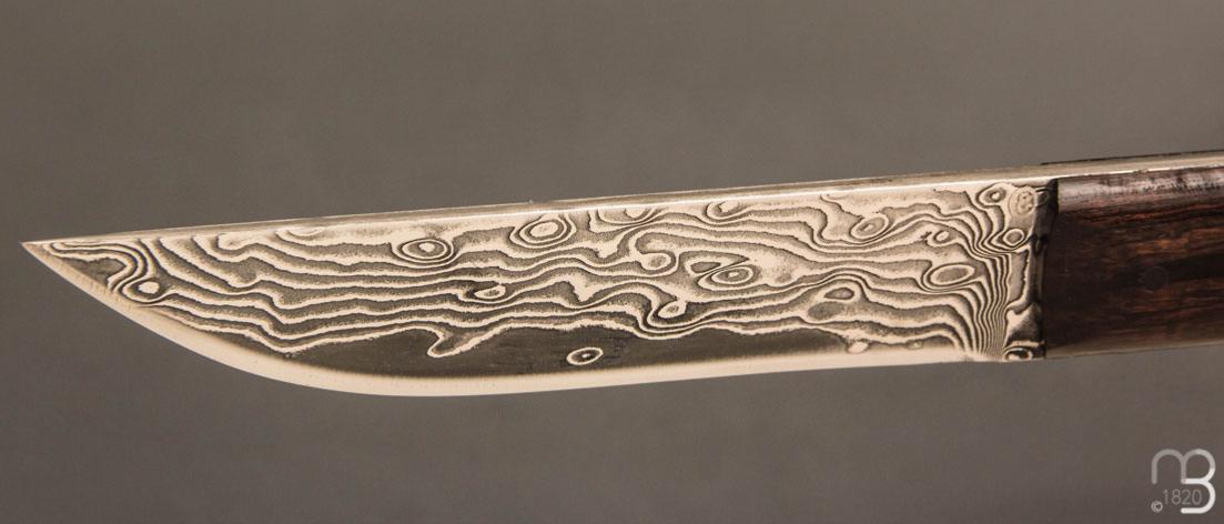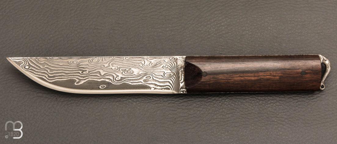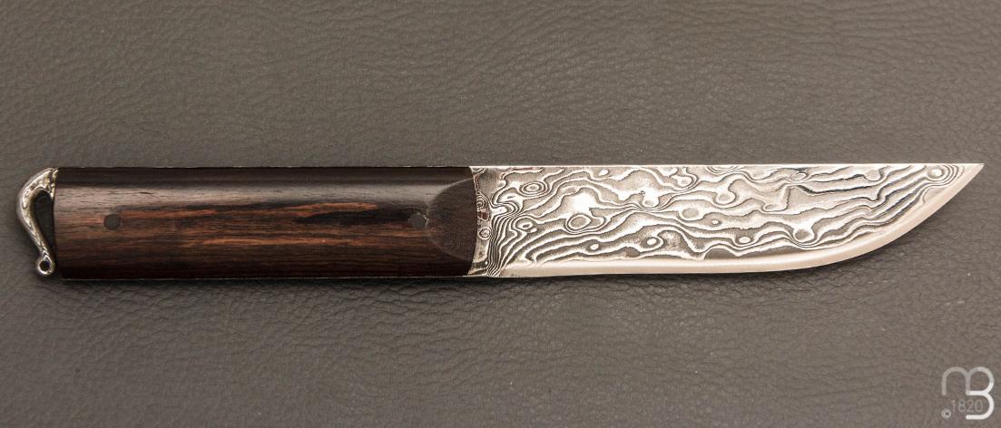 Couteau custom fixe par Roberto Ottonello - Bois de fer et lame en damas inoxydable