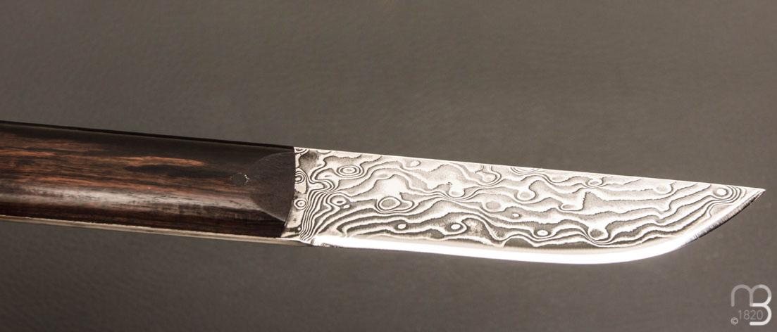 •  Couteau custom fixe par Roberto Ottonello - Bois de fer et lame en damas inoxydable