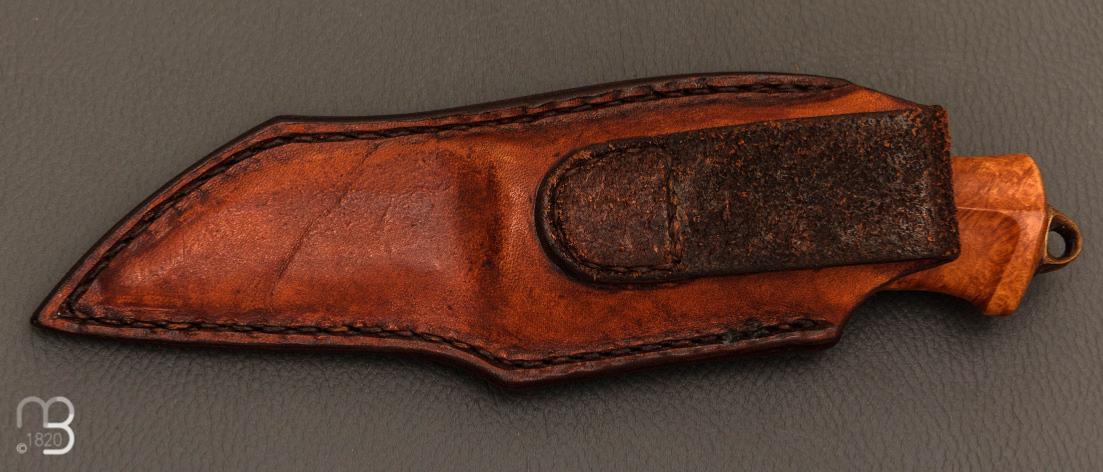 Ce couteau de Roman Stoklasa est livré avec un étui en cuir brun tout travaillé, il s'agit d'un couteau unique, vous recevrez donc le modèle proposé sur les clichés ci dessus.