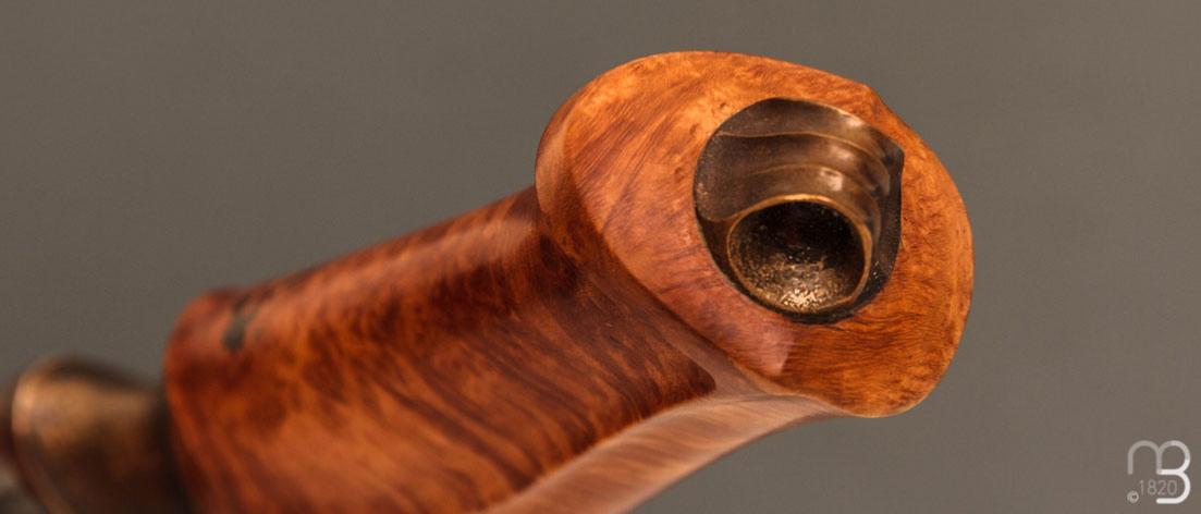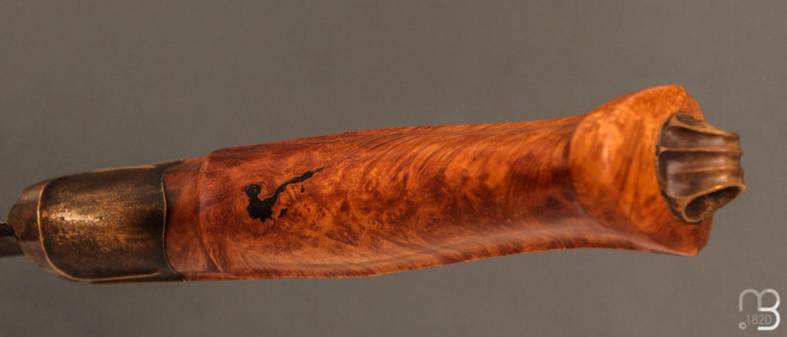 Manche en bruyère et garde en bronze entièrement travaillés.