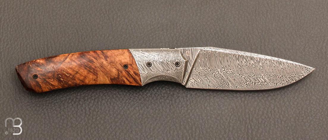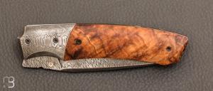 Couteau  "  custom front flipper " tilleul stabilisé et damas inox par Berthelemy Gabriel - La Forge Agab