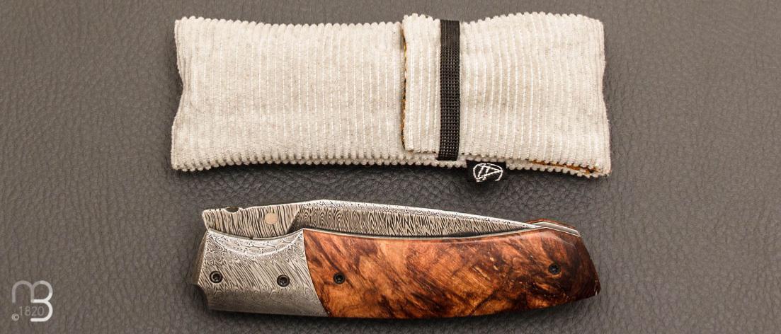 Couteau " custom front flipper " tilleul stabilisé et damas inox par Berthelemy Gabriel - La Forge Agab