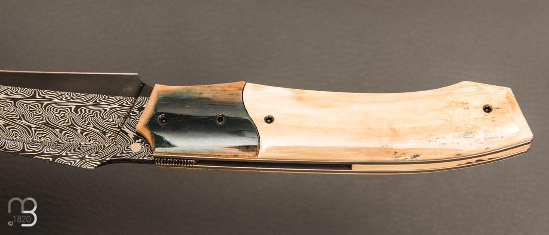 •    Couteau " custom " de Berthelemy Gabriel - La Forge Agab - ivoire de mammouth et damas