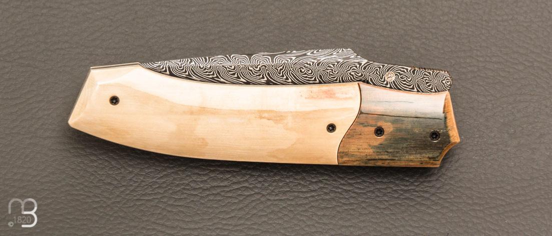 Couteau " custom " de Berthelemy Gabriel - La Forge Agab - ivoire de mammouth et damas