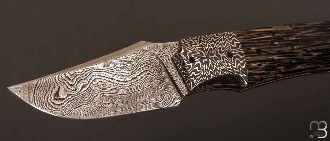 Couteau " custom " liner lock de Berthelemy Gabriel - La Forge Agab - Palmier et lame damas