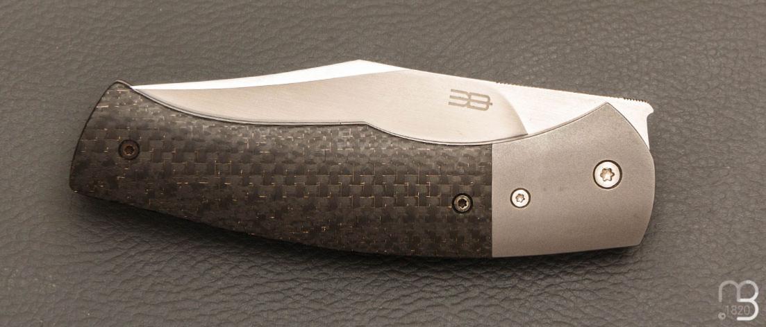 •   Couteau " custom " liner-lock par Emmanuel Lebrun - Carbone/Titane et lame en RWL34
