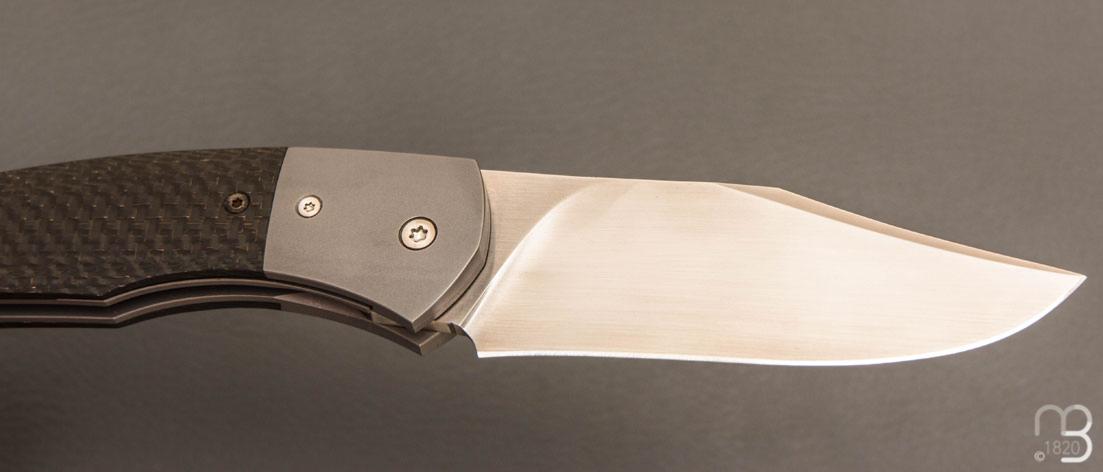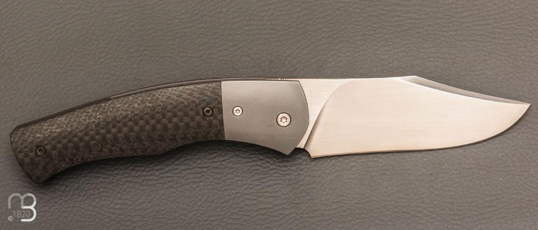 Couteau " custom " liner-lock par Emmanuel Lebrun - Carbone/Titane et lame en RWL34