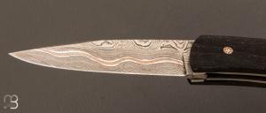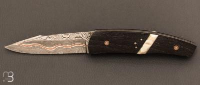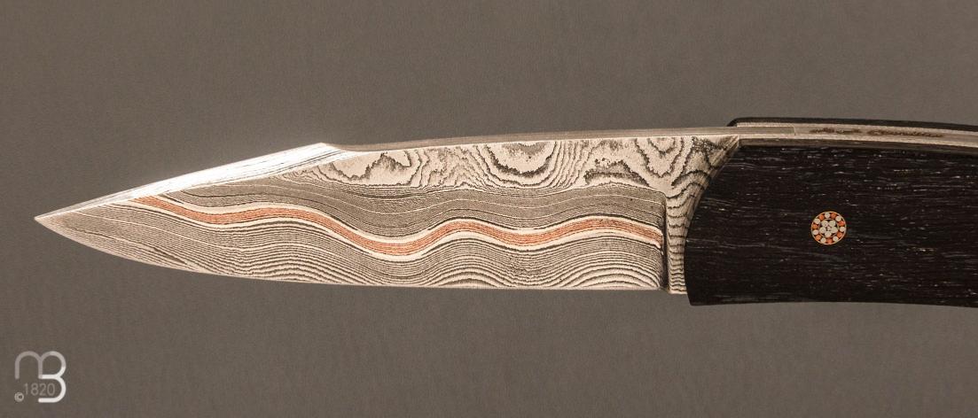 Couteau de collection par Alain & Joris Chomilier avec une lame en damas San Maï carbone cuivre