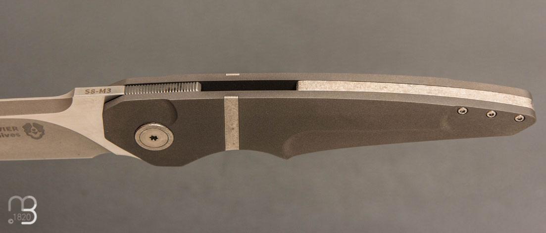 Couteau pliant liner-lock avec butée cachée fait main par Bouvier Knives - Bertrand Maxime.