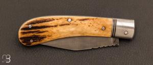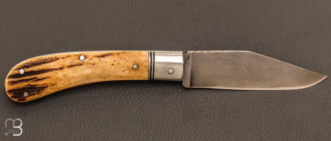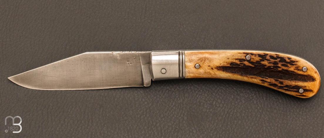 Couteau custom pliant à cran carré par Pierre Henri Monnet - Bois de cerf
