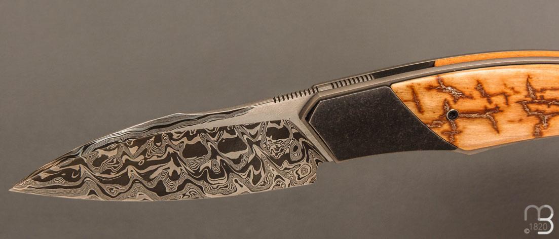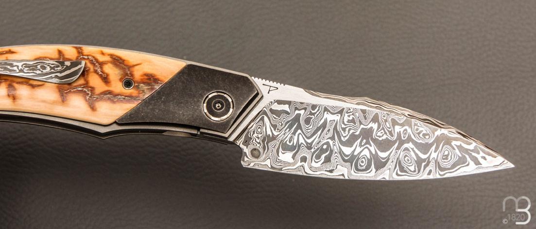 Couteau " custom " pliant de David Lespect - Ivoire de mammouth et lame damas