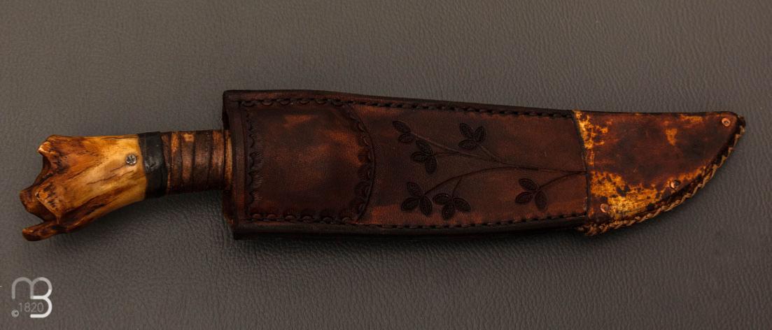 Couteau de chasse par Laurent Gaillard et Pierre Henri Monnet - Os de cerf et acier 100C6