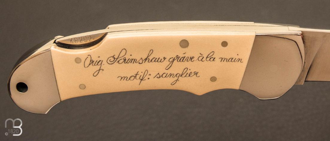 •  Couteau de poche custom Wildlife de Puma Scrimshaw "Sanglier"