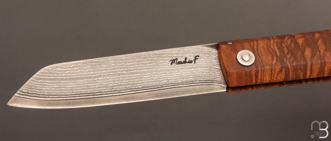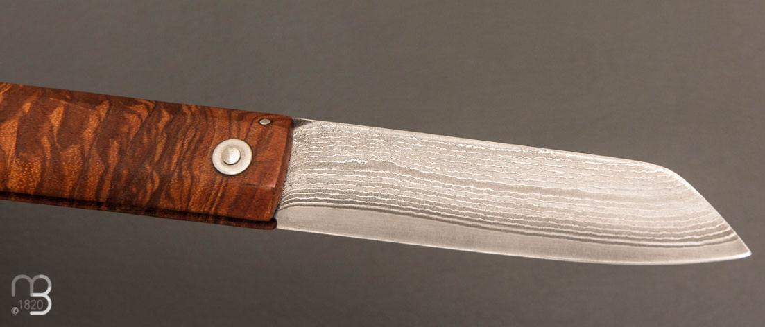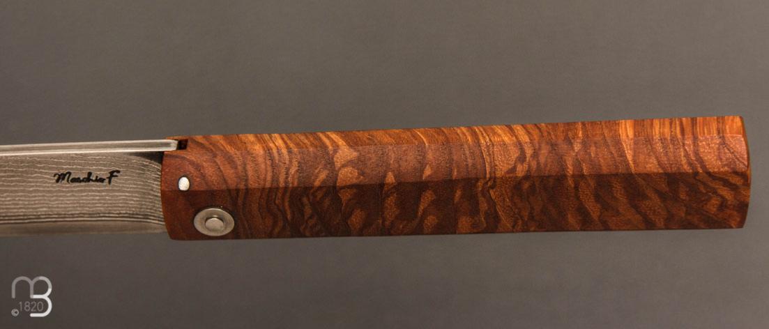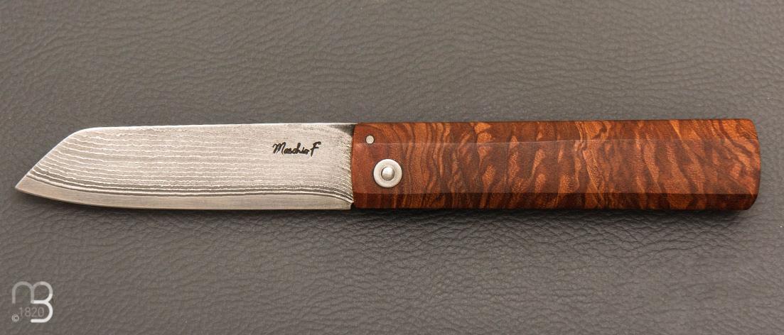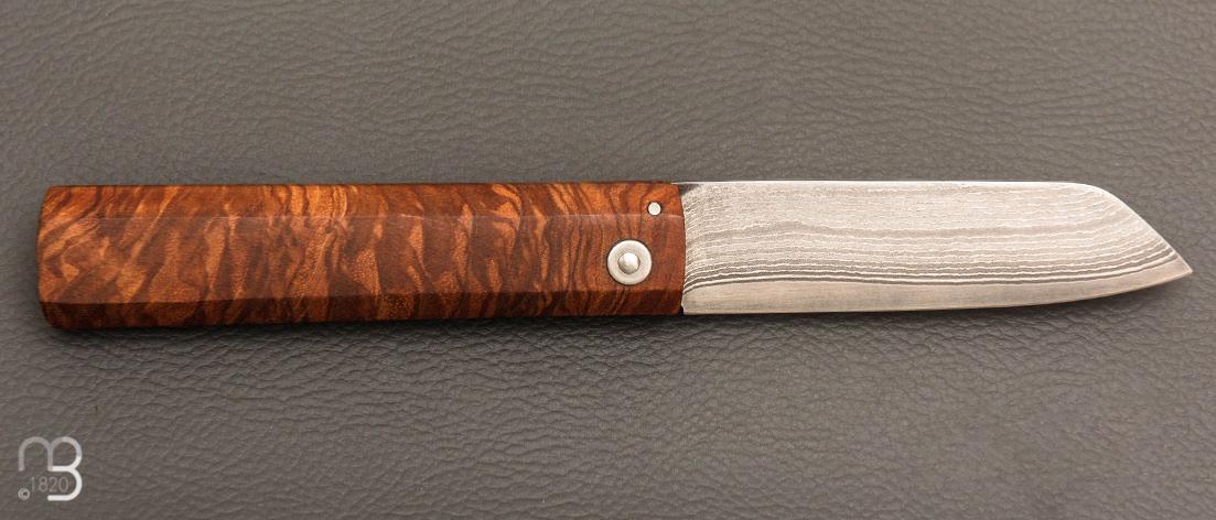 Couteau de poche L'Okto en racine de frêne par Frédéric Maschio - Lame damas VG10