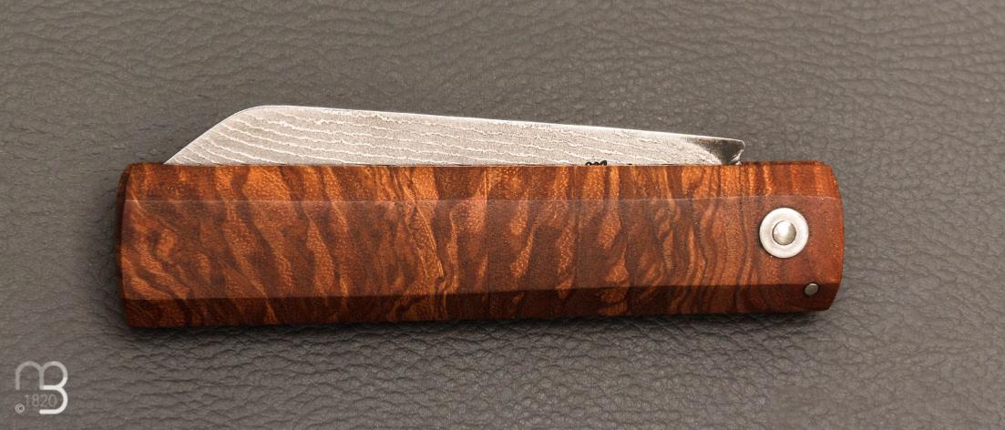 •  Couteau de poche L'Okto en racine de frêne par Frédéric Maschio - Lame damas VG10