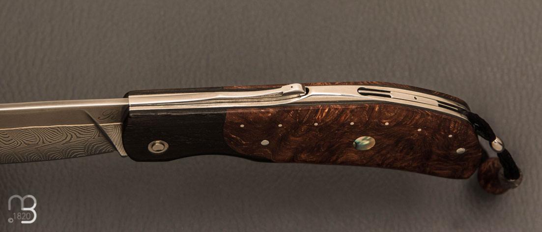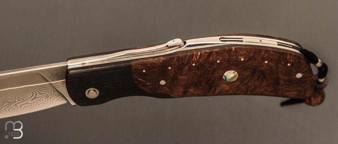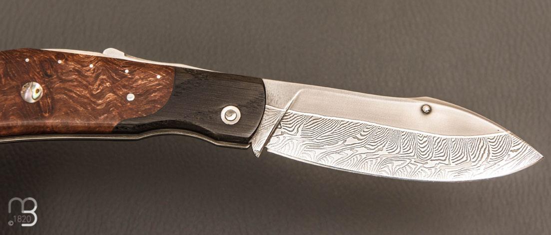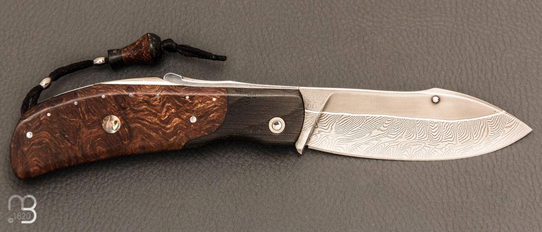 •    Couteau " Dépeceur lock-back " par Tony Ruot - Damas et loupe de chêne